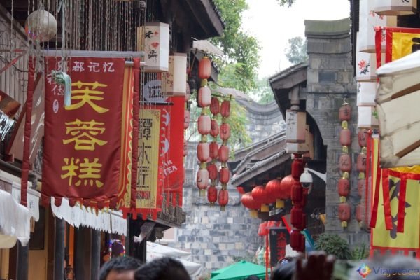 Situada ao lado do santuário de Wuhou e do Tibetan Market, a Jinli Ancient Street é uma área turística / comercial muito interessante para se conhecer quando se visita Chengdu. Reconstruída em 2004 com dezenas de edifícios inspirados no estilo antigo do oeste da Sichuan. A Jinli Street se aproxima muito daquilo que nós temos no nosso imaginário como a verdadeira China.